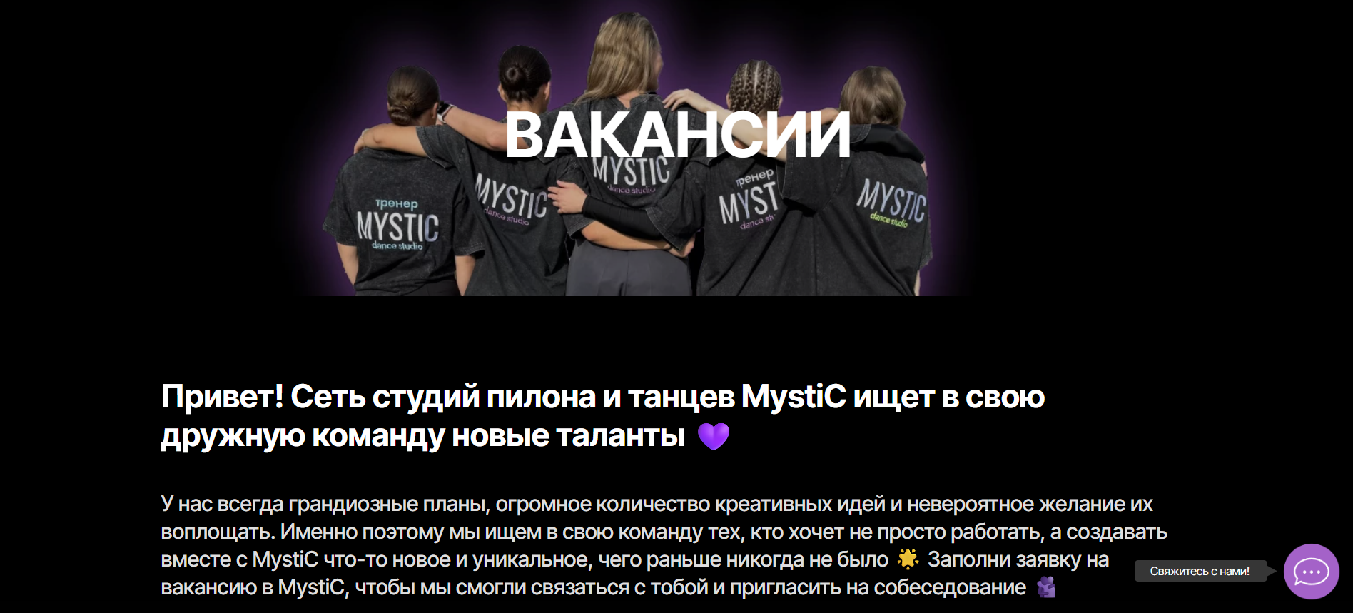 Привет! Сеть студий пилона и танцев MystiC ищет в свою дружную команду новые таланты 💜